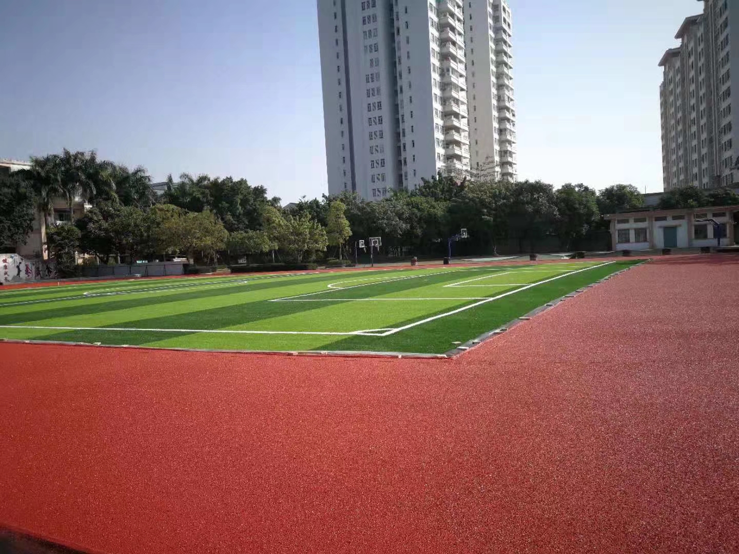有了這層保護(hù),孩子們運(yùn)動(dòng)的時(shí)候,老師也會(huì)放心很多,可以進(jìn)行更多有趣的室外活動(dòng),不會(huì)輕易被束縛。對(duì)孩子們的身心健康發(fā)展也是很有好處的。而且塑膠跑道的顏色艷麗,大多是以紅色為主,輔助畫上其他顏色的線,孩子們會(huì)非常喜歡這樣的場(chǎng)地。那么在進(jìn)行室外活動(dòng)的時(shí)候,孩子們就不會(huì)太排斥。多參加室外活動(dòng),呼吸新鮮空氣,對(duì)他們的健康也都是非常有好處的,平時(shí)在塑膠跑道上可以做運(yùn)動(dòng),也可以做游戲,豐富生活。