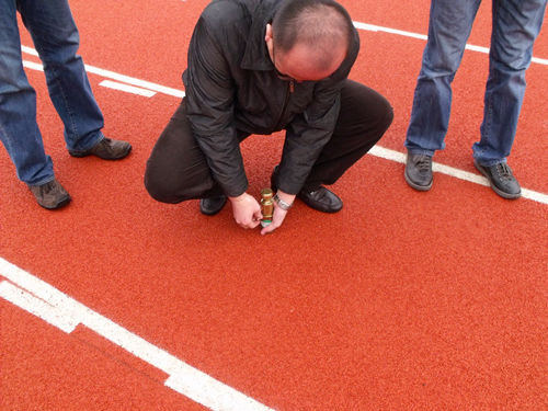 1.確定當(dāng)日當(dāng)班工作量,將EPDM粉料(¢0.5以下)、細(xì)料(¢0.5-1.5)及面層粘接劑按當(dāng)班需要的數(shù)量運(yùn)到作業(yè)面周邊區(qū)域,并確定當(dāng)日溫度、濕度等氣候條件;