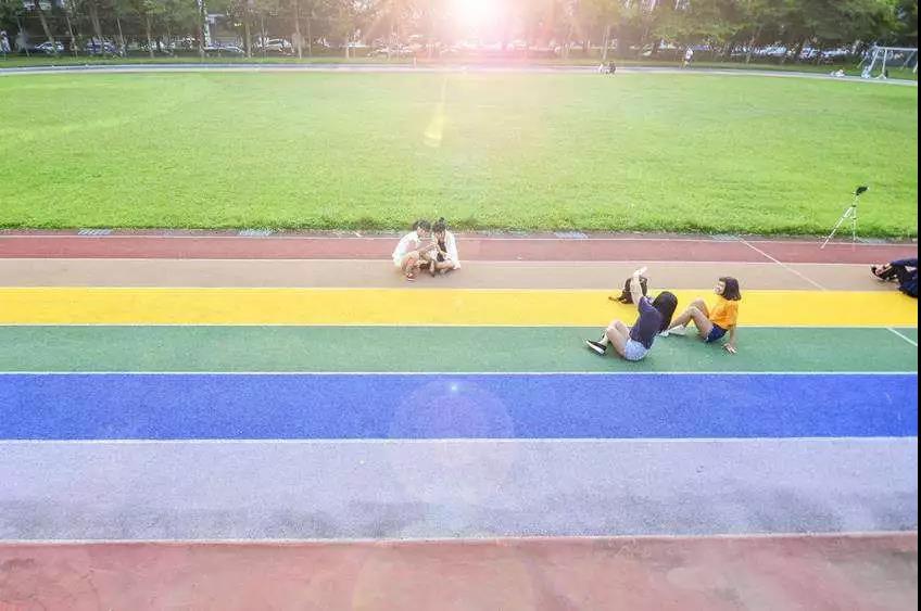 如果說藍色塑膠跑道可以使人平靜,那彩虹跑道帶來的除了驚喜就是驚喜了;