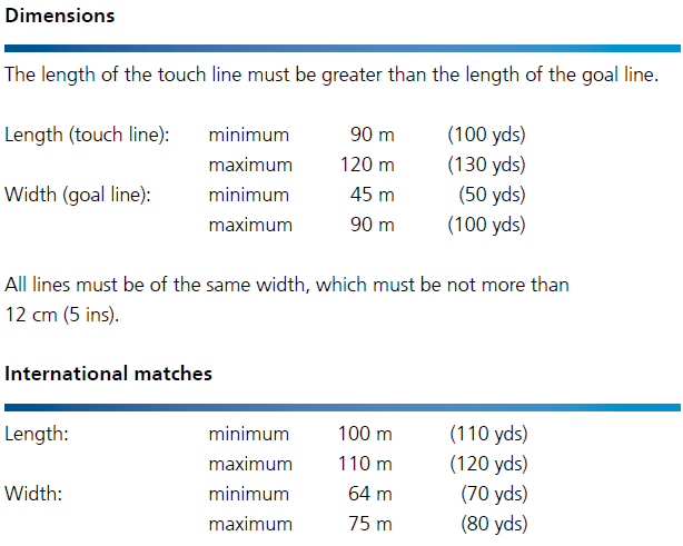 寬度:最短45米(49碼) 最長(zhǎng)90米(98碼)